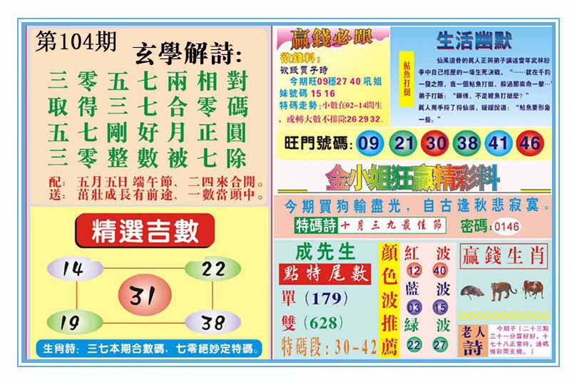 | 104期《平特一肖》「狗狗狗」开:00 准 |