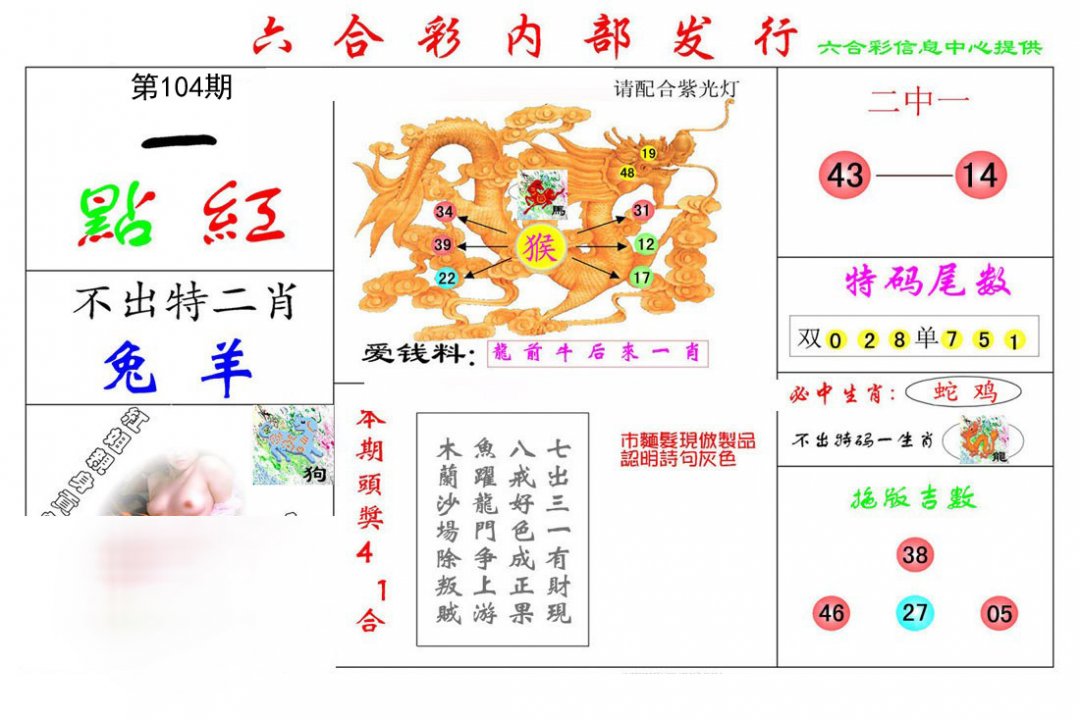 | 063期:龍前蛇後二中特,七五中特三八并。 开:鸡10 |