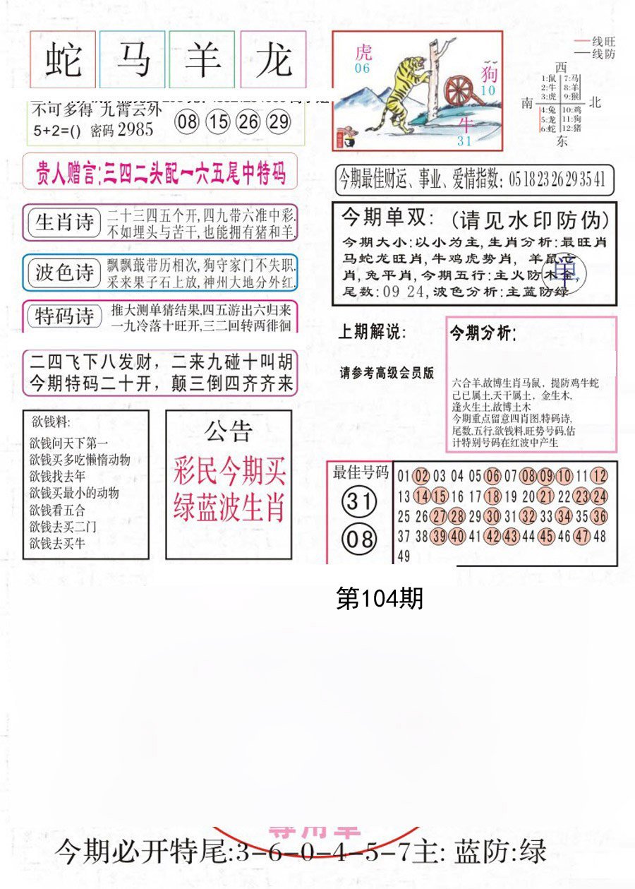 | 101期《杀三尾》-「9-5-6尾」开:虎17 |